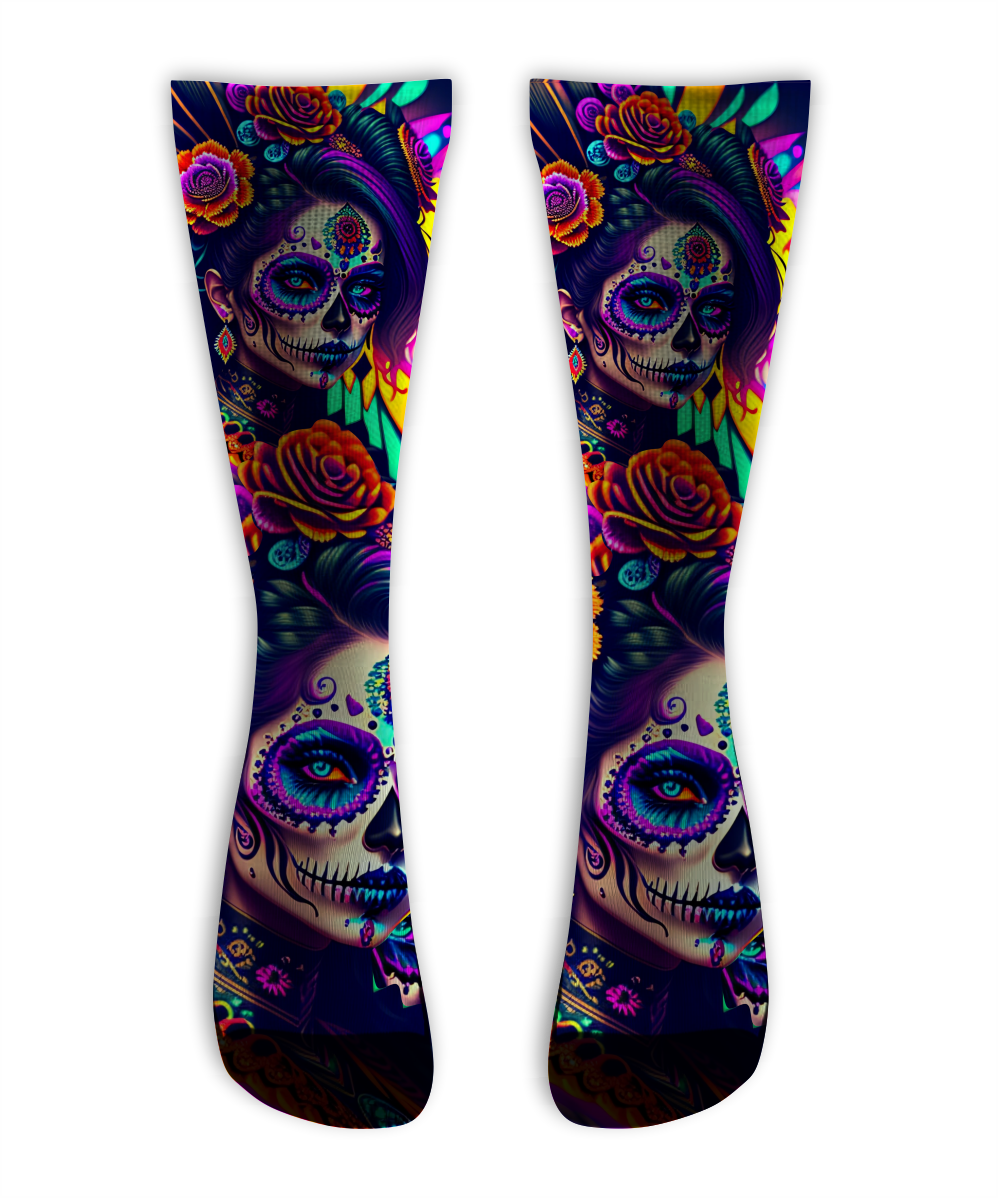 Meia Cano Alto - Catrina Rosas NEON